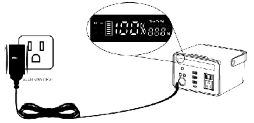 STEP1.启动汽车,STEP2.将配件“车充公头对公头线”一头插入车载点烟器,STEP3.另外一头插入产品“Cigar Light”点烟器接口,屏幕显示”Car->”闪烁,电量图标滚动显示,同时显示充满剩余时间。