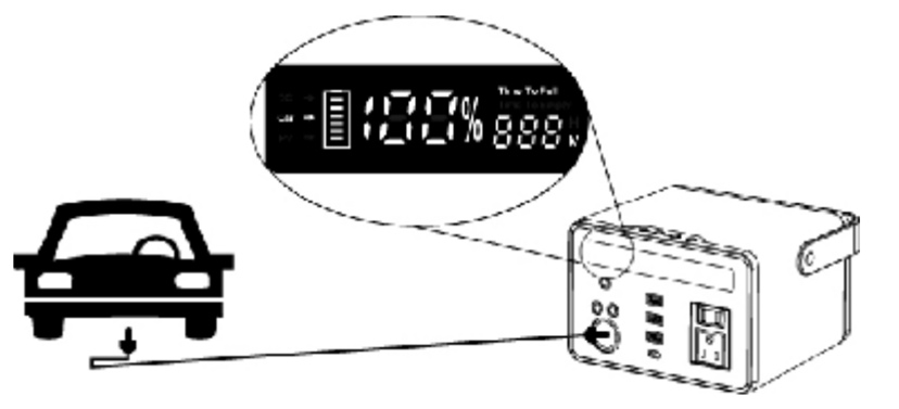 ② 双击产品 DC 按钮,显示屏会闪烁 Car-Start,本产品开始给汽车启动电瓶充电。